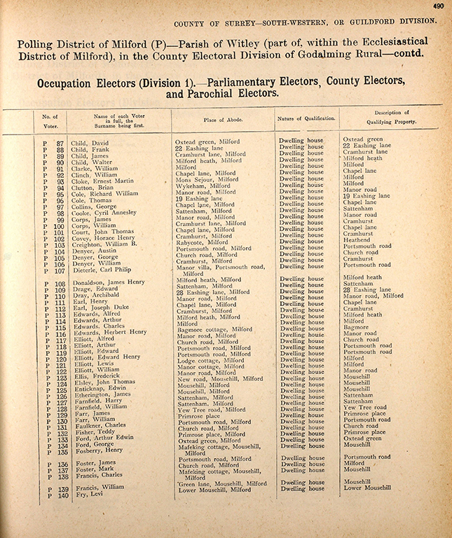 By 1913, Carl and Elsie Dieterle had settled in Milford, near Godalming. Their daughter, Hester was born on 1 March 1913. It seems that Carl had become the Partner and Company Secretary of a Partnership of Cinematograph Proprietors, styled the Liphook Cinema Company.